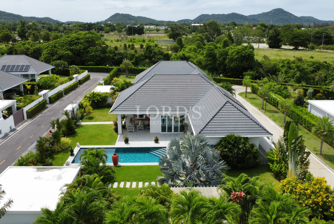 Erleben Sie nachhaltigen Luxus in dieser bezugsfertigen 3-Bett-Pool-Villa in der preisgekrönten Wohnanlage Baan Phu Thara in Hin Lek Fai, Hua Hin. Diese für Energieeffizienz und wartungsarmes tropisches Leben konzipierte Immobilie befindet sich auf einem großen Grundstück in einer erstklassigen “umweltfreundlichen” Gemeinde in der Nähe des Black Mountain Golfplatzes.