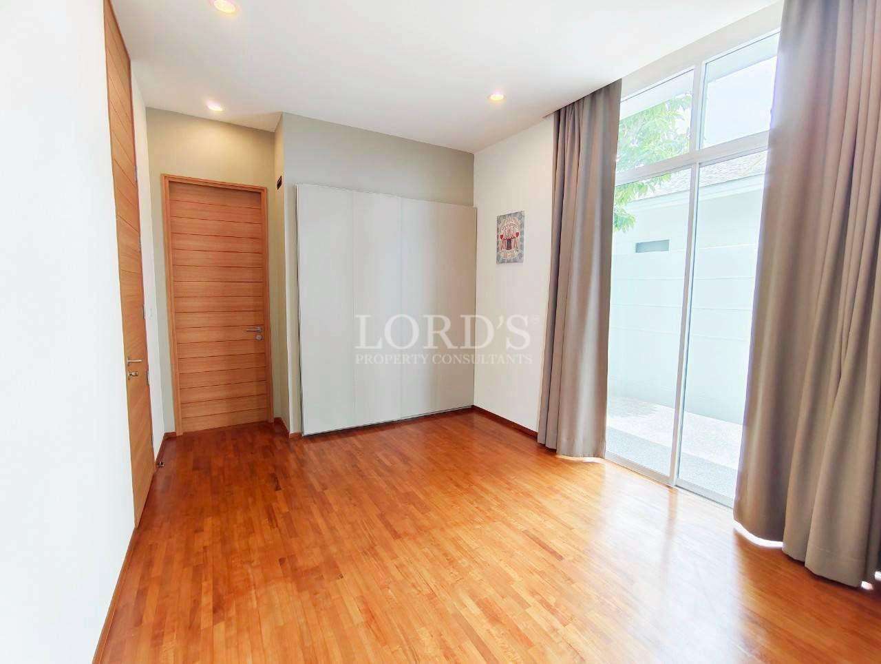 The bedrooms are designed as private sanctuaries, each featuring built-in wardrobes that maximize storage without compromising space. Air conditioning units are installed throughout the entire residence, ensuring consistent climate control. The master suite offers direct access to the pool deck, allowing residents to wake up to serene water views every morning.