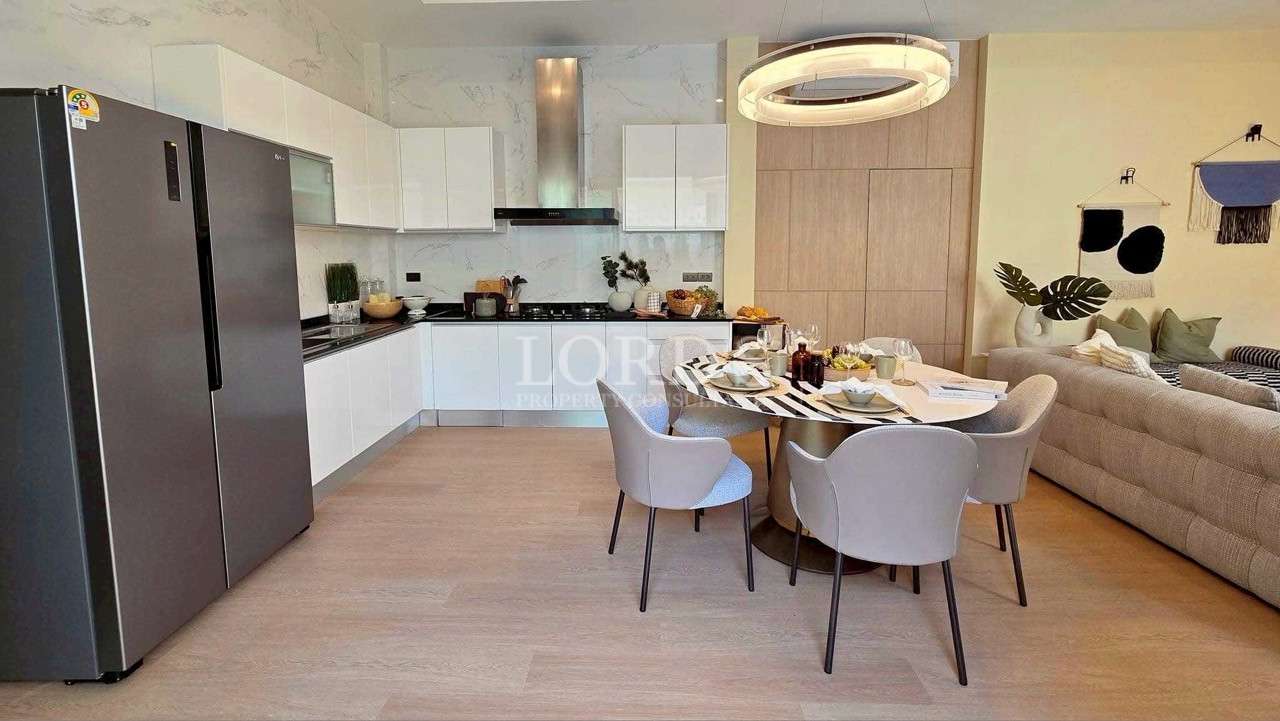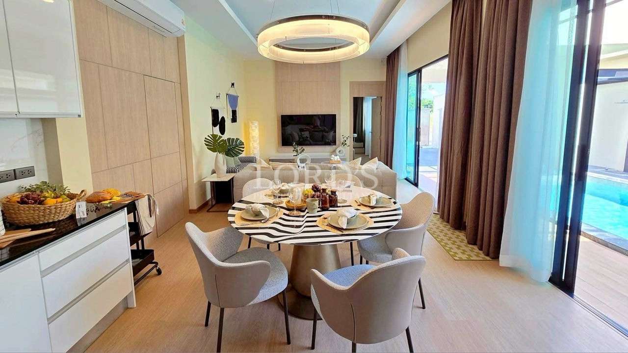 The heart of this villa is the open-plan living and dining area, meticulously furnished to provide immediate comfort. Residents will enjoy a state-of-the-art European-style kitchen, fully equipped with premium cabinetry and modern appliances. The property includes three spacious bedrooms and three elegantly appointed bathrooms, offering privacy for all occupants. Every detail, from the stylish furniture to the integrated water systems, has been selected to meet the highest standards of luxury and functionality.