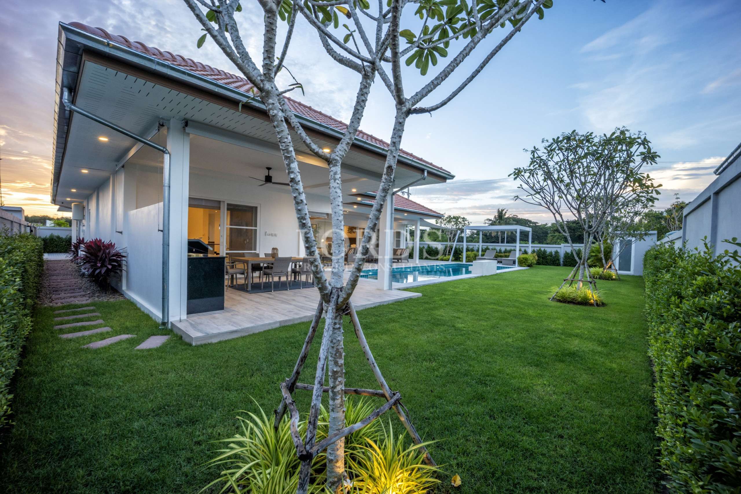Mali Lotus Executive Luxury Villas represent the pinnacle of boutique community living in the highly sought-after Thap Tai area of Hua Hin. This exclusive development consists of only 20 premium residences, ensuring a private and tranquil environment for homeowners. Each property is designed around the signature Villa Leelawadee Plus model, emphasizing a seamless blend of indoor and outdoor living. With plot sizes ranging from 810 sqm to an expansive 1,104 sqm, these homes provide the luxury of space that is increasingly rare in modern developments.