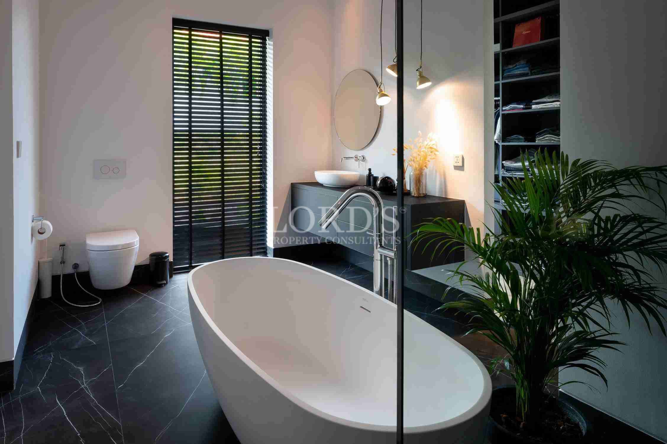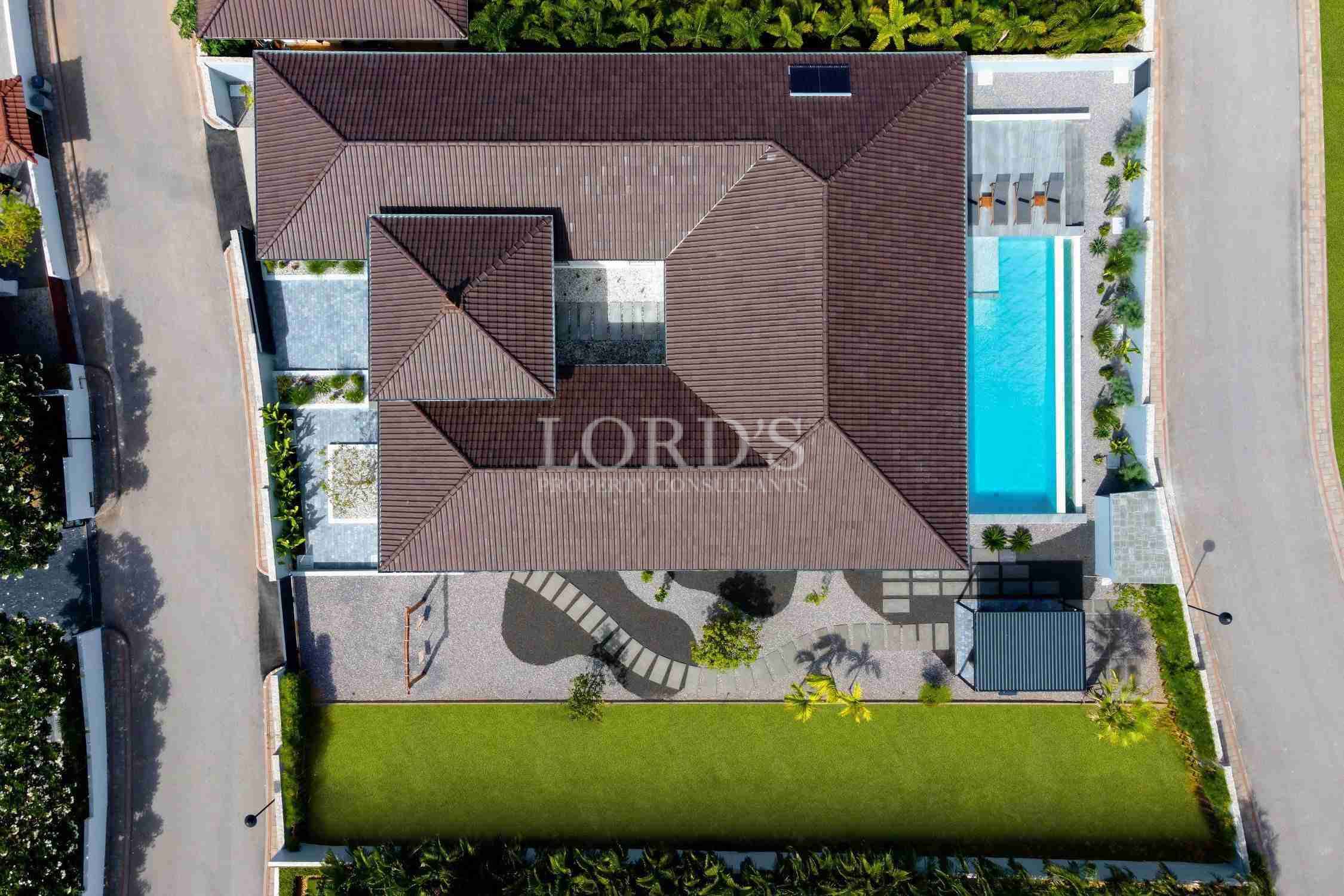 Luxury living reaches a new standard in this 411 square meter Balinese-inspired villa located within the prestigious Belvida Estates, formerly known as Banyan Residences. Completed in 2020 and situated on an expansive 1,337 square meter plot, this residence provides a seamless blend of sophisticated indoor spaces and tropical outdoor areas. The architecture centers around a traditional courtyard that creates a social, airy atmosphere perfect for both permanent residency and high-end holiday escapes.