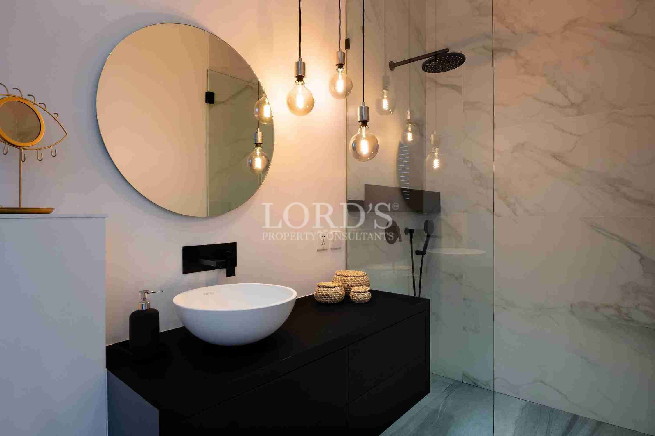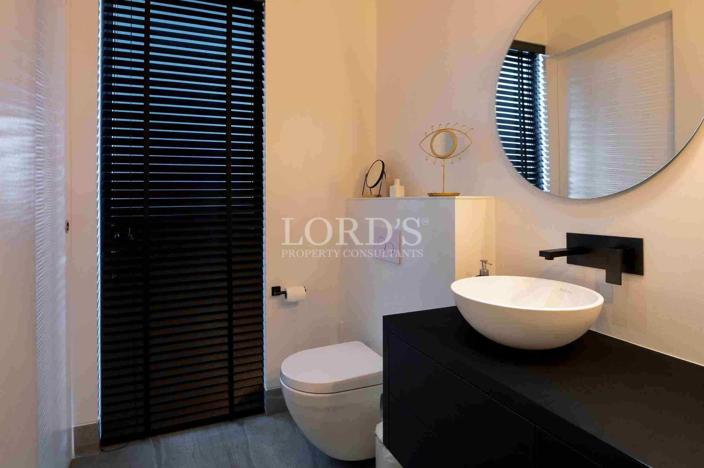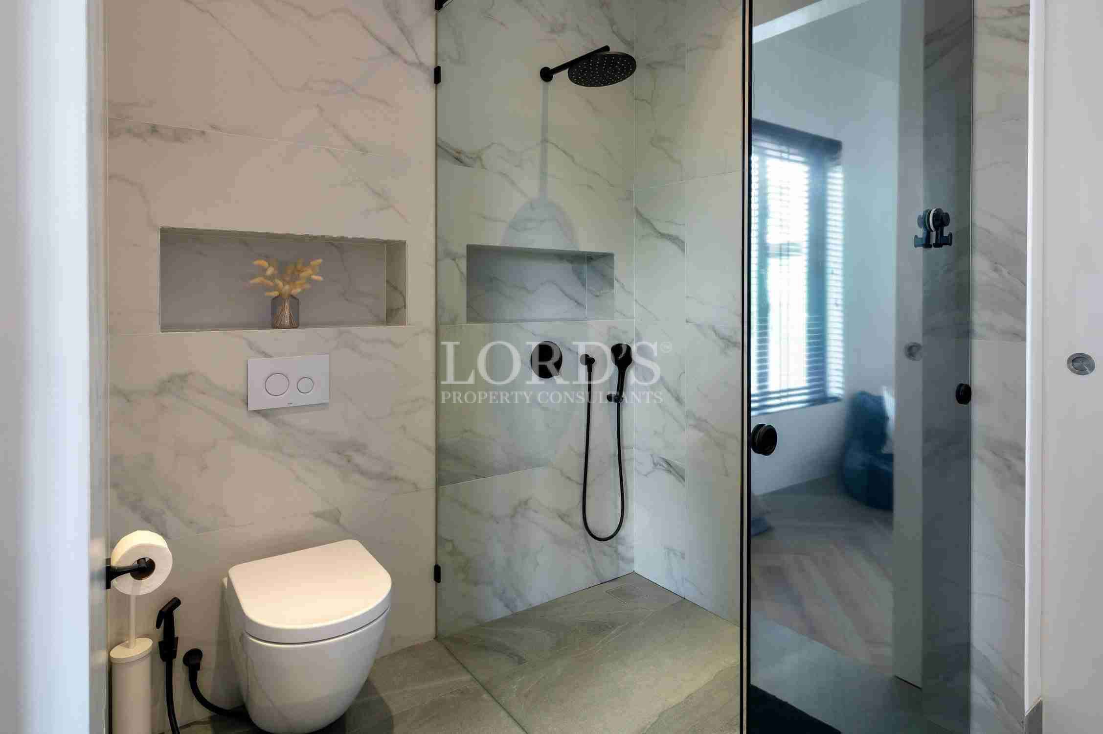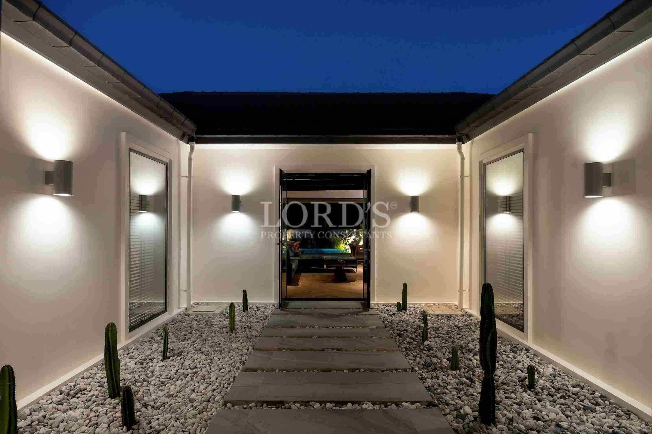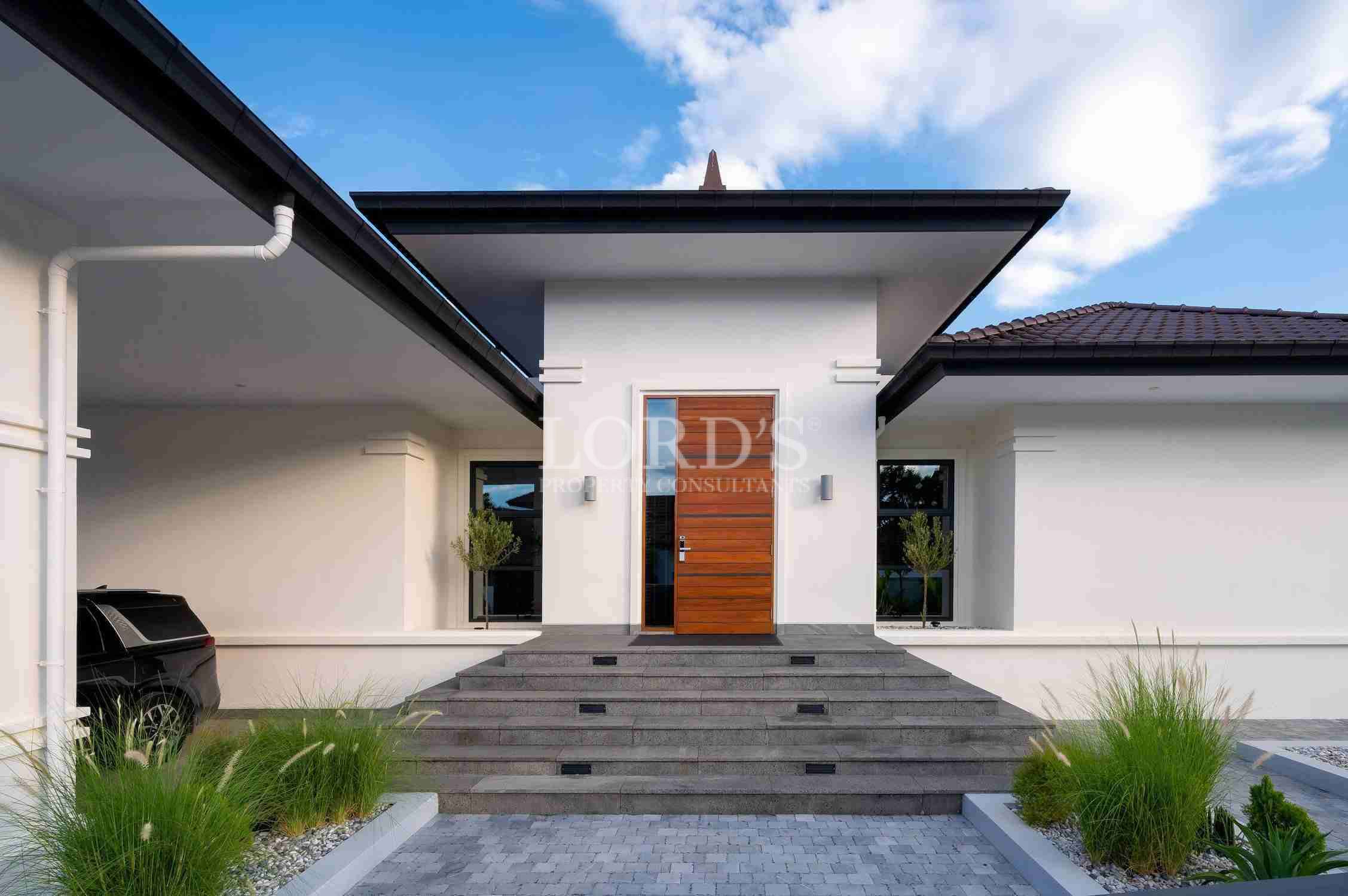 The interior layout is designed for privacy and functionality, featuring five spacious bedrooms and four modern bathrooms. The master suite offers a private sanctuary with a walk-in wardrobe and direct access to the poolside terrace. Three bedrooms include en-suite facilities, while the remaining rooms share a well-appointed bathroom. At the heart of the home, an open-plan living and dining area connects to a high-end European kitchen, complemented by a dedicated study, storage rooms, and a laundry area. High-efficiency Daikin inverter air conditioning and double-glazed aluminum windows ensure climate-controlled comfort throughout the year.