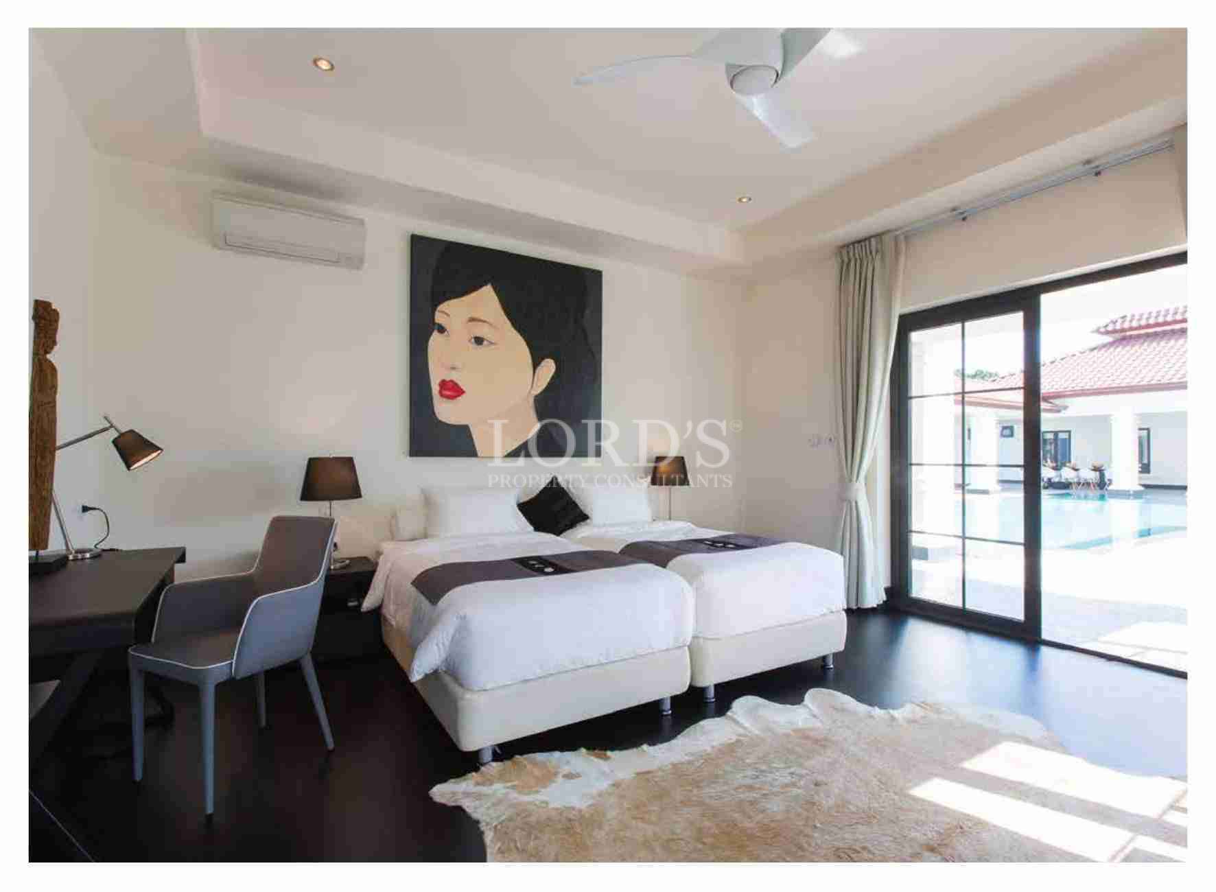 Benefits The exterior is defined by a large private swimming pool surrounded by landscaped tropical gardens. Being a golf course property, it offers immediate access to elite sporting facilities while remaining in a secure, 24-hour gated community. The location in Hua Hin South provides a quieter, more exclusive atmosphere while remaining minutes away from the beach, international schools, and Bangkok Hospital Hua Hin.