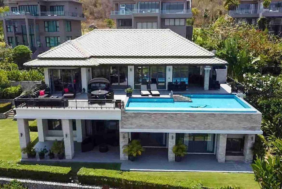 Black Mountain Luxury Golf Course Villa represents the pinnacle of tropical living for golf enthusiasts and luxury seekers in Thailand. This architectural masterpiece is situated on a sprawling 1,207-square-meter plot, strategically positioned to offer unobstructed, panoramic views of the world-renowned Black Mountain Golf Course. Designed across two meticulously planned levels, the residence harmonizes modern European aesthetics with the breezy, indoor-outdoor lifestyle essential for luxury living in Hua Hin.