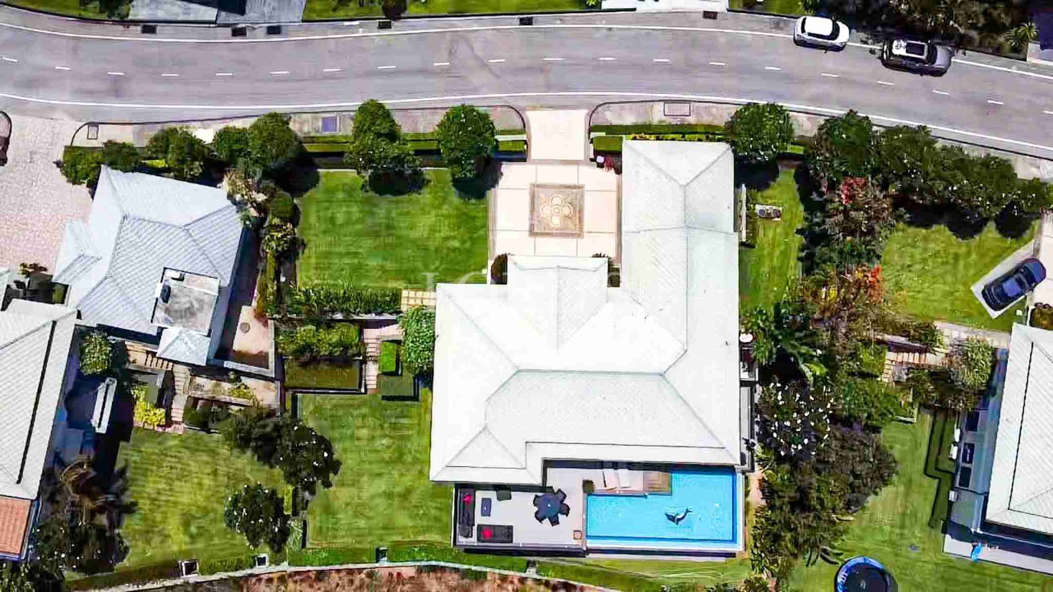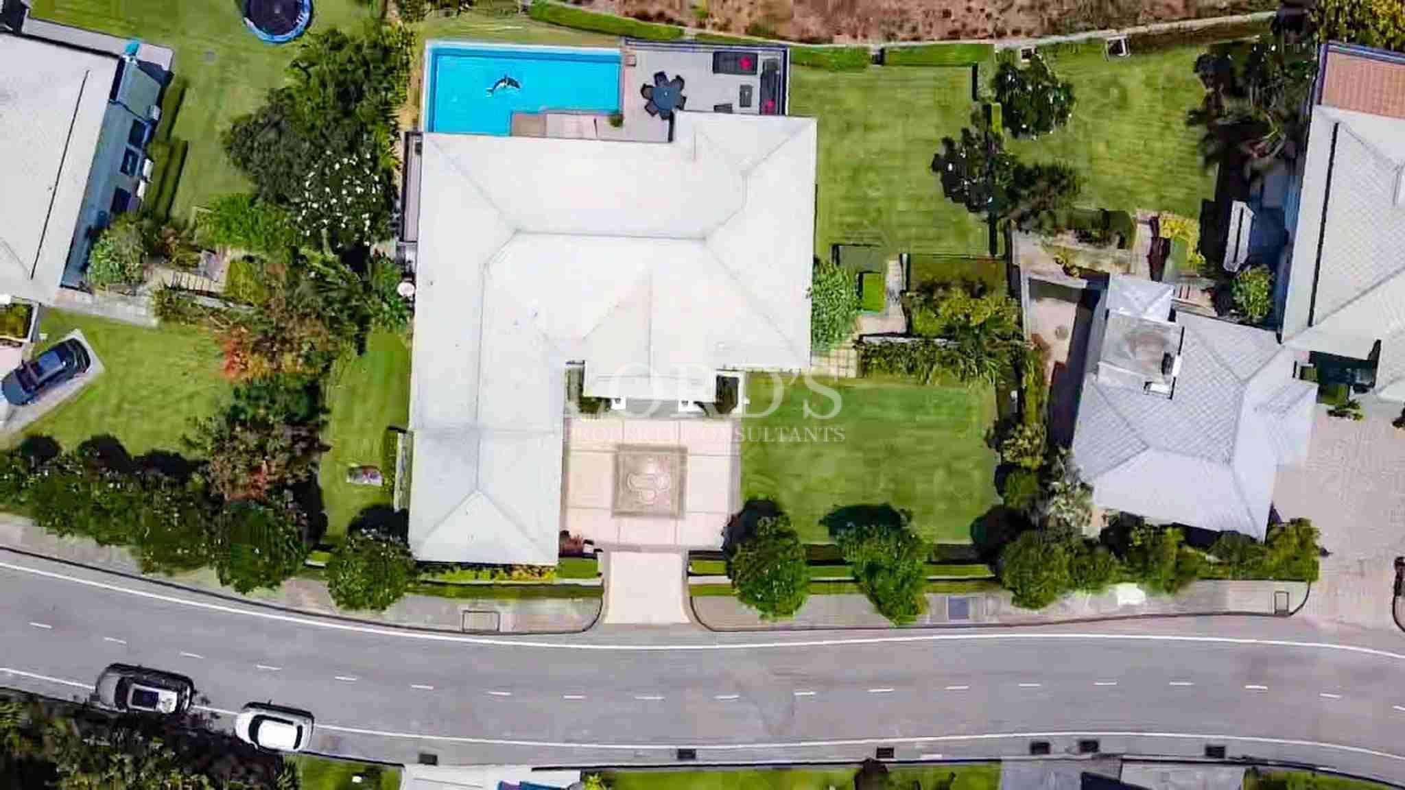 The exterior of the property is as impressive as the interior. A well-maintained tropical garden wraps around the villa, enhancing the sense of seclusion. The grand driveway leads to a covered carport area, providing protection for vehicles and a sophisticated entrance for residents.