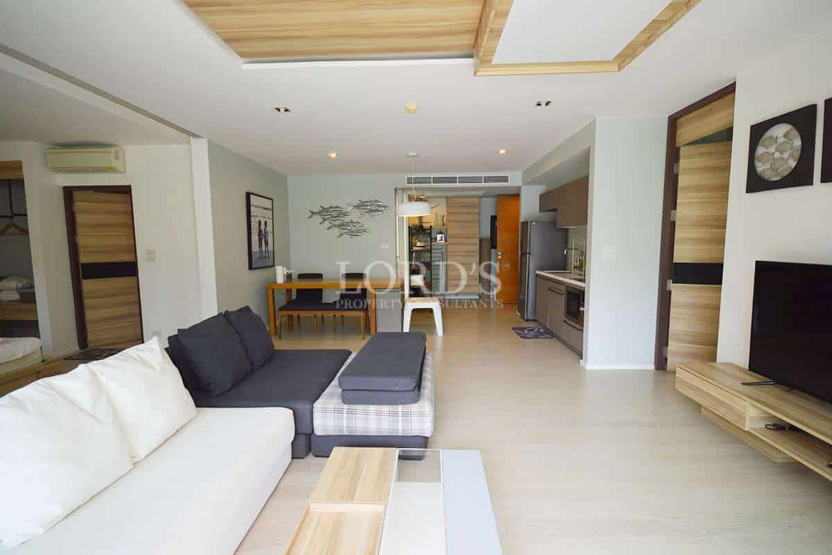 Experience the pinnacle of coastal luxury with this rare ground-floor unit at Wan Vayla, situated on the pristine sands of Khao Tao. Spanning 90.50 square meters, this premium two-bedroom residence offers the highly sought-after pool access feature, allowing residents to step directly from their private terrace into the expansive communal waters. Located just 10 minutes south of Hua Hin town center, this property balances secluded beachfront tranquility with convenient city access.