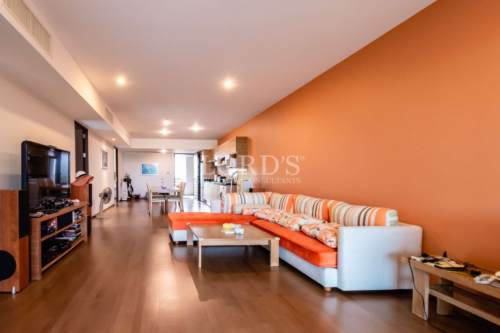 Modern design meets coastal functionality within this expansive unit. The layout is centered around a bright living area that transitions seamlessly into a high-spec European kitchen, equipped with contemporary appliances and ample cabinetry. Each of the three bedrooms is designed for privacy, with the master suite offering direct vistas of the coastline. High ceilings and floor-to-ceiling glass doors enhance the natural light and airflow throughout the 156-square-meter floor plan.