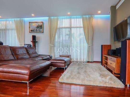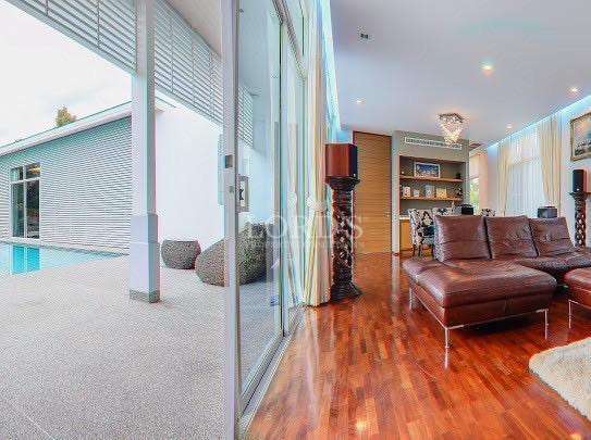 Outdoor living is centered around a private salt-system swimming pool. Unlike traditional chlorine pools, the salt system offers a gentler swimming experience, requiring less chemical maintenance and providing a more natural feel. The pool area is flanked by a professional-grade landscape design on a generous 968-square-meter land plot, offering ample space for outdoor entertainment and gardening.