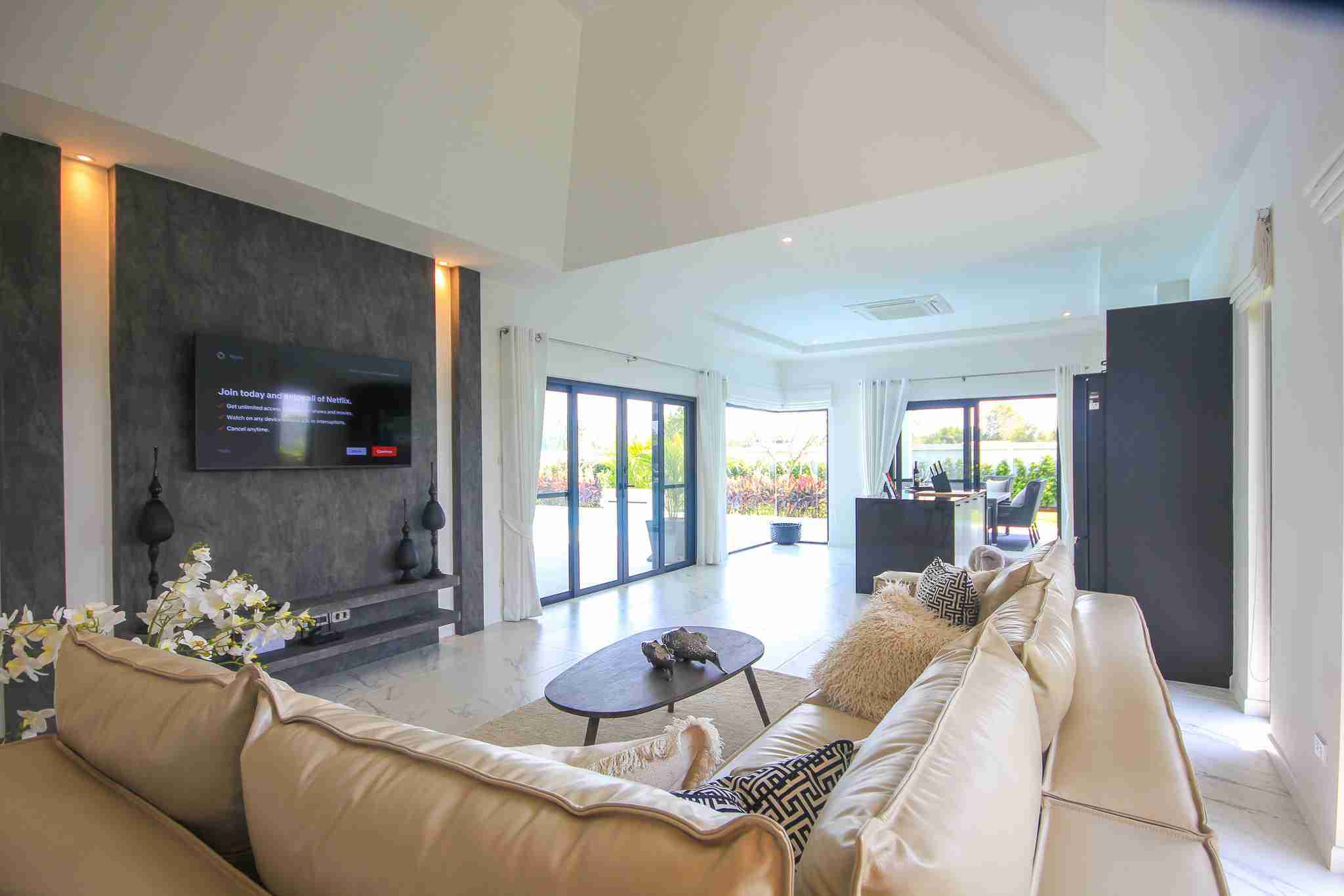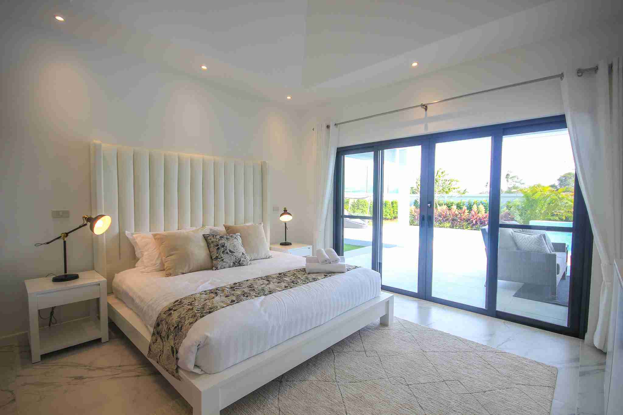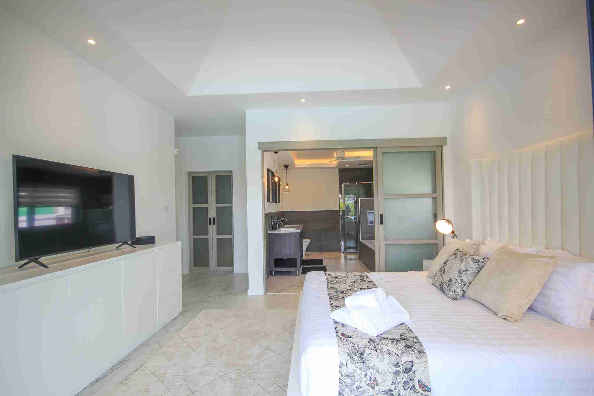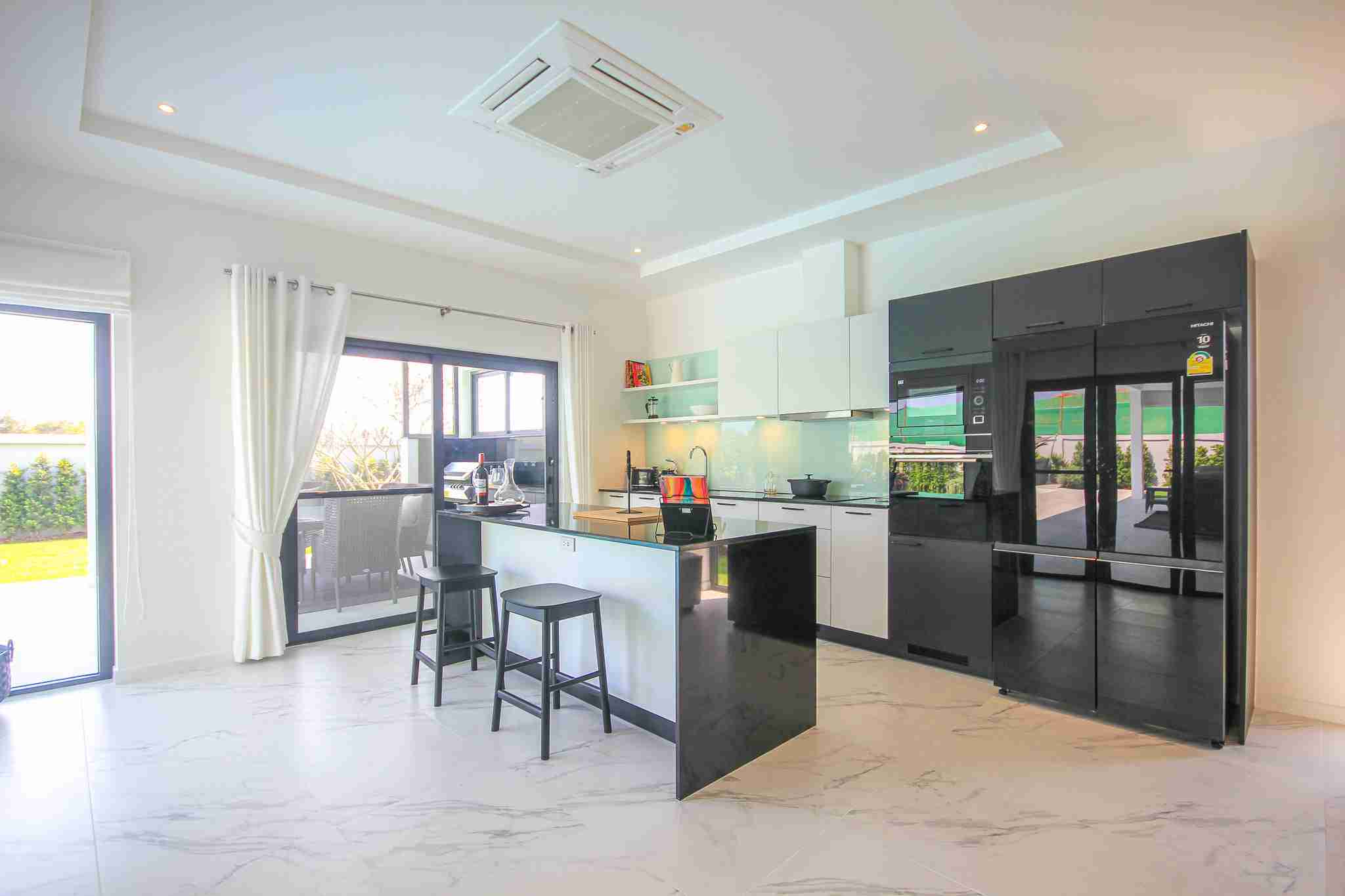 Each villa features a designer European kitchen from the Danish company Kvik, equipped with modern built-in appliances. Buyers benefit from a 350,000 Baht furniture voucher to customize their home through Beautiful World Hua Hin. This integration of top-tier brands ensures that the aesthetic appeal of the home is matched by its functional durability.